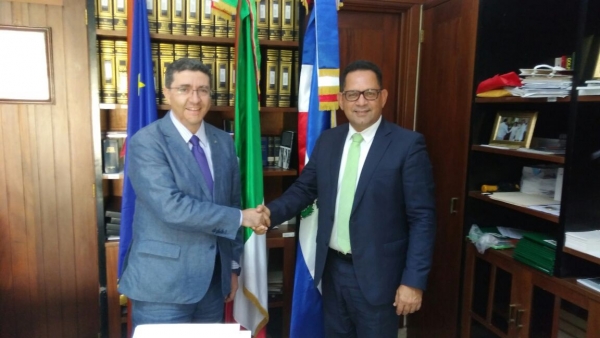 10.07.2018 Encuentro del Ing. Miguel Bejarán Director General de Desarrollo Fronterizo, con el Embajador de la República de Italia Sr. Andrea Canepai en la Embajada de su país, en dicho